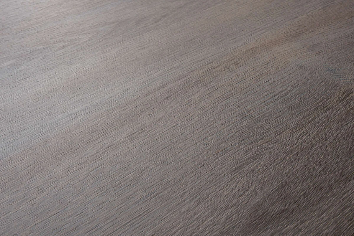 Дубовый интерьерный материал "Клубхаус серый" демонстрирует виртуозное использование светотеневой техники, где яркие и темные оттенки серого создают сложную игру на бежевой основе дуба. Эта композиция способствует созданию визуально многослойного и текстурно богатого пространства, что является важным аспектом в области интерьерного дизайна и архитектуры.