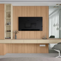 В ламинированном ДСП бежевого цвета наблюдается гармоничное сочетание теплых оттенков коричневого и деликатной текстуры белого. Разнообразие доступных декоров, отличающихся различными текстурами, позволяет использовать этот материал в проектах дизайна интерьера, соответствующих как классическим, так и современным архитектурным концепциям. Данный декор, обладающий успокаивающими и расслабляющими свойствами, демонстрирует высокую универсальность и эффективно интегрируется с текстурами, имитирующими натуральное дерево.