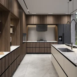 Кашемир, как цвет, обладает уникальной способностью к интеграции в различные дизайнерские концепции благодаря своей нейтральной и спокойной палитре. Этот материал характеризуется органическими серо-коричневыми оттенками, которые подвержены трансформации в зависимости от условий освещения, создавая эффект многослойности и динамики. В результате достигается гармоничный баланс между комфортом и элегантностью, что делает кашемир предпочтительным выбором для создания утонченных и функциональных интерьерных решений. Особенно эффективно он сочетается с серым камнем и пастельными тонами, что позволяет формировать визуально приятные и сбалансированные композиции.