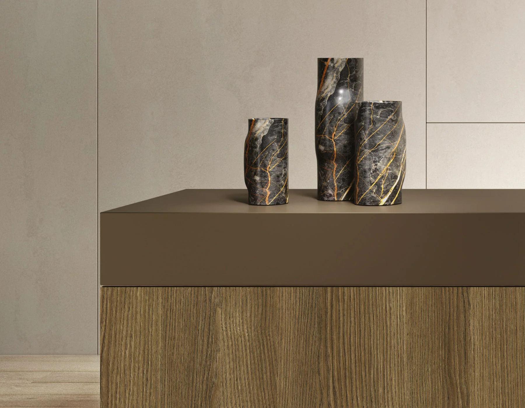 Тёмно-коричневый декор, обладающий уникальной глубиной цвета, способен создать атмосферу уединения и окутать любой элемент интерьера землистой темнотой. Данный цветовой спектр, ассоциирующийся с тёмным шоколадом, приобретает особую привлекательность при использовании в хорошо освещенных пространствах благодаря наличию теплых красных оттенков, которые способствуют созданию более располагающей и комфортной обстановки.