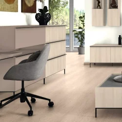 Декор H3860 "Клён сахарный шампань" представляет собой тщательно воссозданную имитацию древесины канадского клёна. Благодаря естественному дощатому рисунку и множеству цветовых переходов, этот светлый материал обладает высокой эстетической привлекательностью и широким потенциалом для создания разнообразных комбинаций. Лёгкий перламутровый блеск, покрывающий поверхность, придаёт её текстуре удивительную глубину и объём, усиливая визуальное восприятие и тактильные ощущения. Структура ST9 "Мягкий матовый" обеспечивает полное соответствие декора природному материалу как по внешним, так и по тактильным характеристикам, что делает его идеальным выбором для интерьеров, требующих аутентичности и высокого уровня эстетического восприятия.