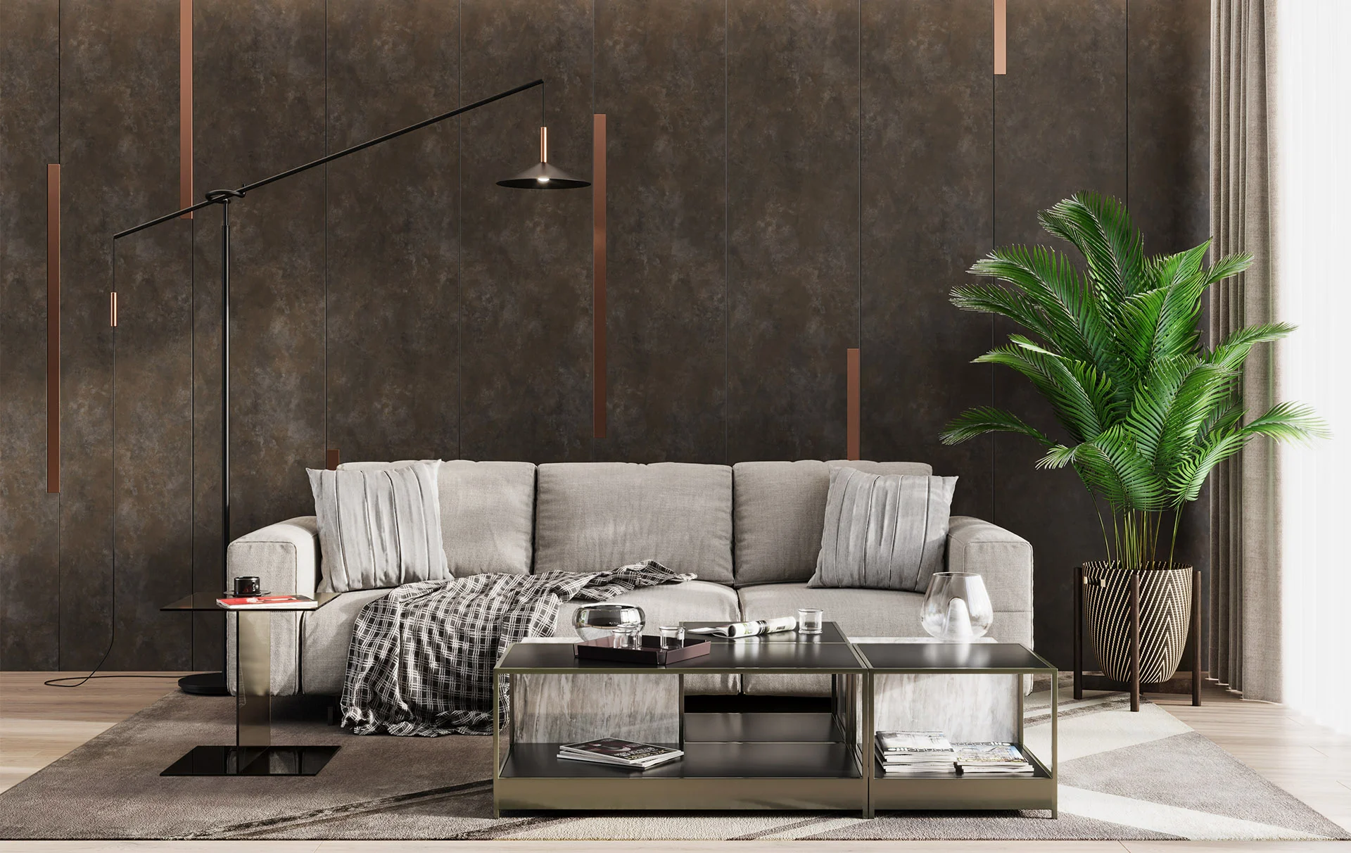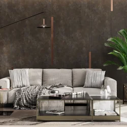 Дуб Харбор характеризуется эффектным визуальным старением и наличием мягких волокон, которые оживляют его тональную палитру. Легкое винтажирование придает ему органичный и естественный вид, создавая иллюзию многолетней эволюции и естественного старения древесины.
